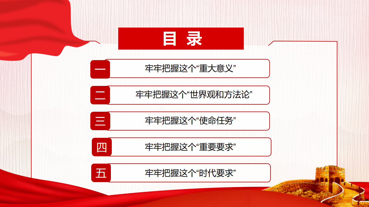 徐聪校长指出,“五个牢牢把握”是全党学习贯彻党的二十大精神的“动员令”和“指导课”。“五个牢牢把握”既各有侧重,又相互统一,是对党的二十大精神实质的高度概括,是学习贯彻党的二十大精神的总体要求和重要遵循。要深刻理解其内涵,做到“五个牢牢把握”,将捍卫“两个确立”、做到“两个维护”铭刻于骨、融化于血,把党的二十大精神学到深处落到实处。
