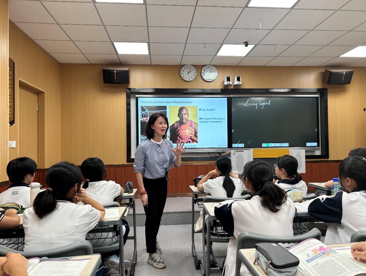 发表时间:2023-10-27 10:00 2023年10月26日下午,福州格致中学给听课老师带来了3节英语公开课。 第一节是来自李舒老师教授的必修一unit 3 Living Legend 的Reading and Thinking 的第二课时,在第一课时里,老师已经引导学生对介绍郎平的那篇文章进行了详细的文本分析,从主题意义,篇章结构,人物品质,写作手法这几个方面进行归纳总结。本节课一开始,由学生上台展示他们关于郎平这篇文章的思维导图, 并且介绍郎平。然后,通过同伴合作学习,对介绍乔丹的文本进行深度探究,巩固所学知识;紧接着李舒老师引入新语篇,介绍本校校友郑怀颖,学生通过阅读文本,内化已有知识,运用所学来判断郑怀颖是否能被称作Living legend.郑怀颖校友在70年代饮誉世界乒坛,是世乒赛女团冠军主力成员,也是“乒乓外交”的主要成员,能让学生引以为傲,从而激励自己成长成才。最后,在理解语篇的基础上,李舒老师鼓励学生迁移运用语篇分析中学习到的表达技巧,推荐自己心中的living legend, 并给出推荐理由。 最后,老师还引导学生齐声朗读乔丹说过的话,鼓励学生向传奇人物学习,让自己成为自己生活中的Legend。本节课重在激发学生利用上节课所学的文本分析的方法进行实际运用,迁移创新,表达自己的观点。