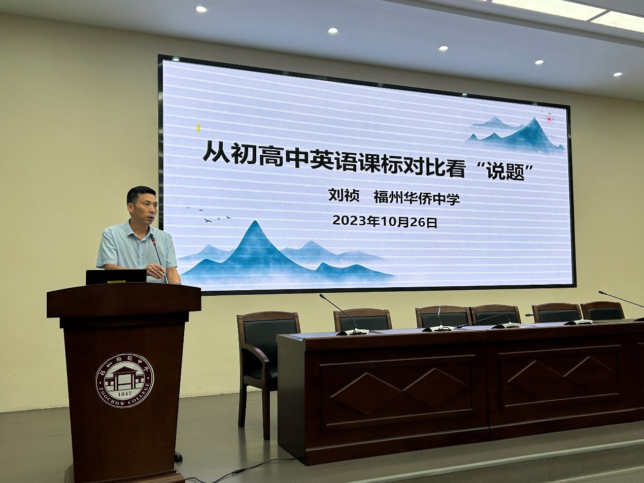 同时,陈蕊老师也给高二学生带来了一节Project课。这节课以学生在本单元城市公园的学习基础上,引入一篇关于世界著名城市公园的语篇学习,从中归纳出城市公园的功能和意义,各城市公园进行的特别活动,以及描述这些活动使用的不同表达法。接下来利用一篇关于福州福道的对话,让学生听取方位关键词,获取游玩路线和可以在福道中进行的特别活动的相关信息,为接下来学生模仿范文,结合不同的城市公园主题和活动,有条理地介绍福州城市公园打下基础。学生课前分组查阅资料,选择城市公园,手绘或下载官方地图,编写对话,课上模仿福道的对话范文就方位、地点和活动内容再进行打磨后交流展示。这堂课通过学习理解,应用实践,迁移创新等一系列体现综合性,关联性和实践性等特点的英语学习活动,使学生基于已有的知识,依托不同类型的语篇,在分析问题和解决问题的过程中,促进自身语言知识学习,语言技能发展,文化内涵理解,能够从人与自然,人与社会的角度了解城市公园的主题意义和人文内涵,通过介绍福州城市公园,对自己家乡的公园有了进一步了解,加深了对家乡的情感和热爱。 来自福高的吴国艳老师对这堂课从三个维度进行点评:深度,宽度和温度。层层递进,渐渐深入,从课本延伸到课外 ,加深对我们家乡城市公园的了解。从阅读,听力和对话不断刺激对本单元学习的巩固,收到了很好的效果。 吴国艳老师还给听课老师们带来一个《践行课标理念,赋能高效课堂》的讲座,在讲座中,她强调了英语课堂教学的12字箴言:学习理解,应用实践,迁移创新,并且结合刚结束的优质课比赛,以及她最近的一堂送教公开课,分享了她的一些教学思考与建议。在讲座中,她建议英语老师们要树立活动观意识,主题意识,主线意识,内化意识,语境意识和评价意识。还介绍了循证阅读的教学方法,读思言教学工具的使用。并且对大观念下单元整体教学和词汇语义网的使用进行详细的介绍,让所有听课老师都受益匪浅。
