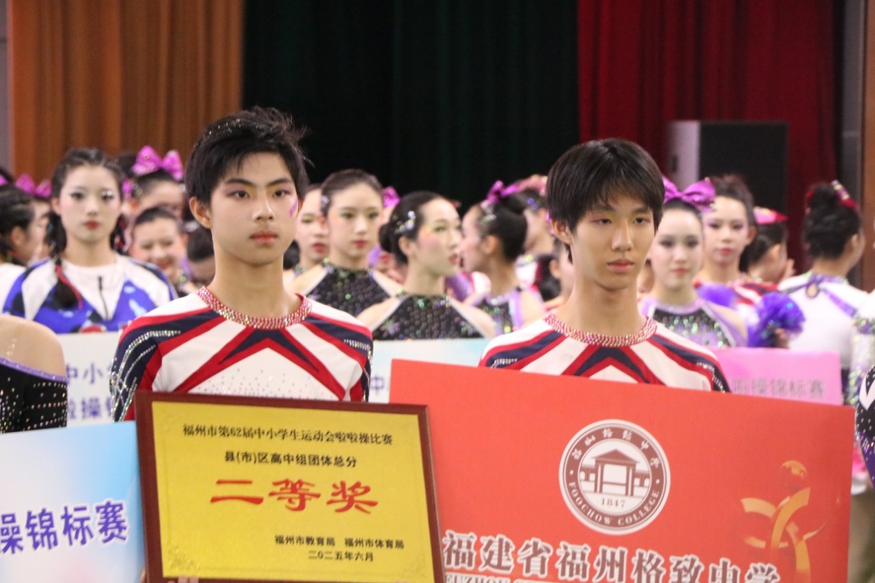 发表时间:2025-07-02 15:36 盛夏热浪,不敌青春热力! 赛场锋芒,尽显格致风采! 在刚刚落幕的第62届福州市中小学生啦啦操比赛上,我校TSIA啦啦操队用他们的热情和征服全场,载誉而归!他们用汗水浇灌梦想,用拼搏诠释青春,斩获技巧啦啦操项目全市第一名,同时以无限活力强势摘得花球啦啦操项目第三名、团体项目二等奖的好成绩! 技巧之巅:力量与精准的完美交响! 聚光灯下,是信念铸就的锋芒!托举如虹,翻腾似电,金字塔稳若泰山——每一个高难度动作都如行云流水,每一次精准抛接都赢得满堂喝彩!赛场上将“格致星”元素融入在技巧口号、吉祥物、旗帜中,展现格致学校特色。全市第一名的桂冠,是对他们日复一日刻苦训练、挑战极限、追求卓越的最硬核褒奖!这不仅是技巧的胜利,更是格致“格物致知,明德致远”精神在力量维度上的璀璨爆发!