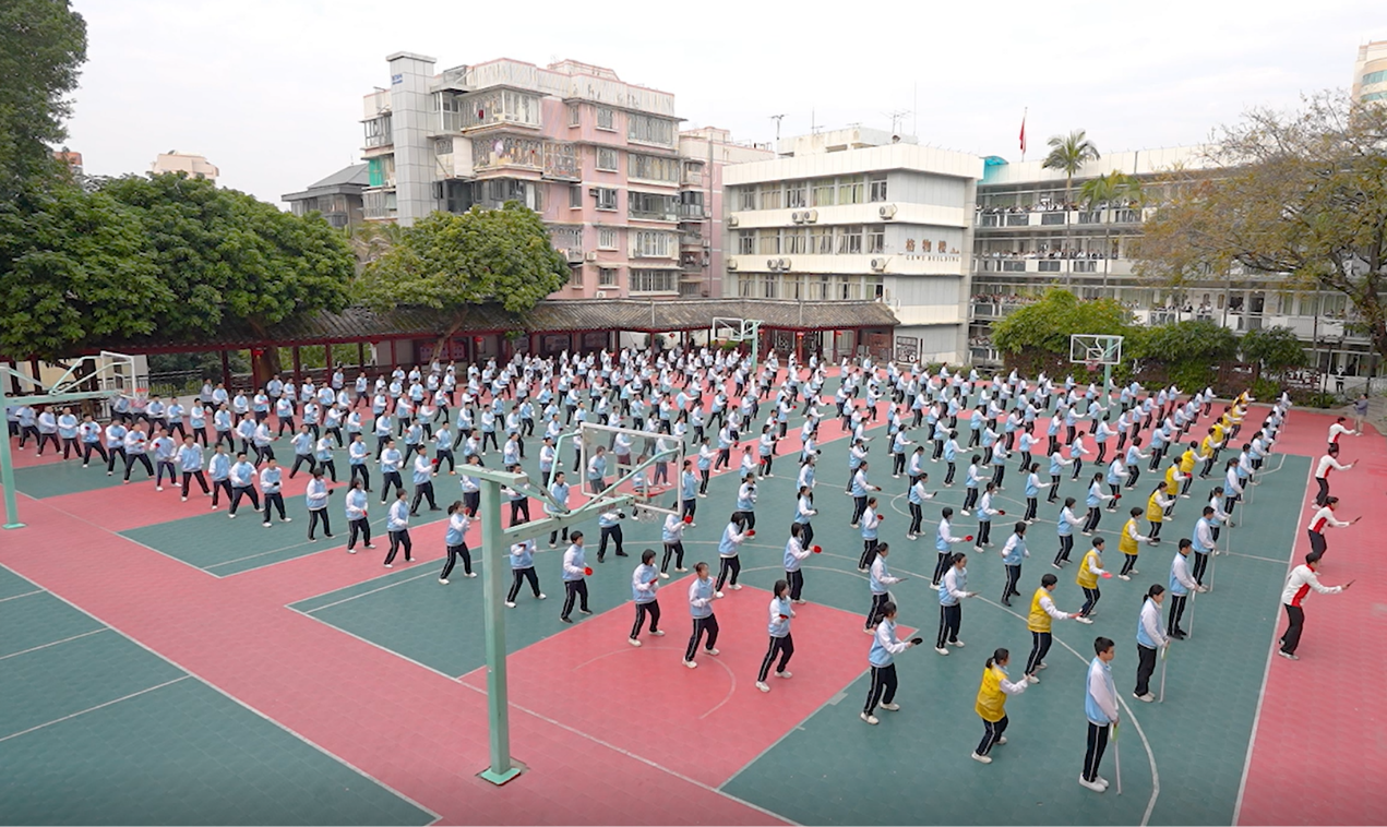 这份荣誉,不仅是对我校 “修身求真 体科艺见长” 办学特色的有力印证,更标志着我校在新时代学校体育工作中,于文化传承与育人方式革新领域迈出了坚实且突破性的一步。 走进格致中学的大课间,你会被这里活力与文化交织的景象深深吸引。我校大课间活动以思政育人为内核,巧妙融合了中国传统体育文化与学校特色项目。高一年级的学子们演绎着自编的乒乓球操,每一个灵动的动作都彰显着学校深厚的乒乓传统;高二、高三的学长学姐们则带来太极功夫扇表演,一招一式刚柔并济,将国粹精髓娓娓道来。