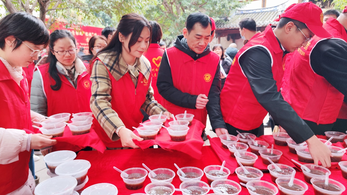 福粥暖人心 鳌峰广场上,处处都是党员志愿者们忙碌的身影。分发礼品袋、引导入座、盛粥、包装、分送,大家分工协作,有条不紊,不一会儿,热气腾腾的拗九粥就送到了社区老人手中。社区老人们品甜粥、吃瓜果、话家常,现场和乐融融,处处涌动着孝老爱亲的暖流。