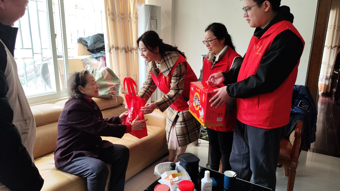 慰问送祝福 党员志愿者还与于山社区工作人员一同走访慰问了辖区内的高龄老人,关心关爱他们的生活起居,为他们送上拗九粥、“长寿面”、“太平蛋”、慰问品,让老人们不出门就能感受到格致中学与社区的关怀和祝福。