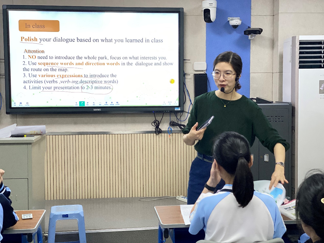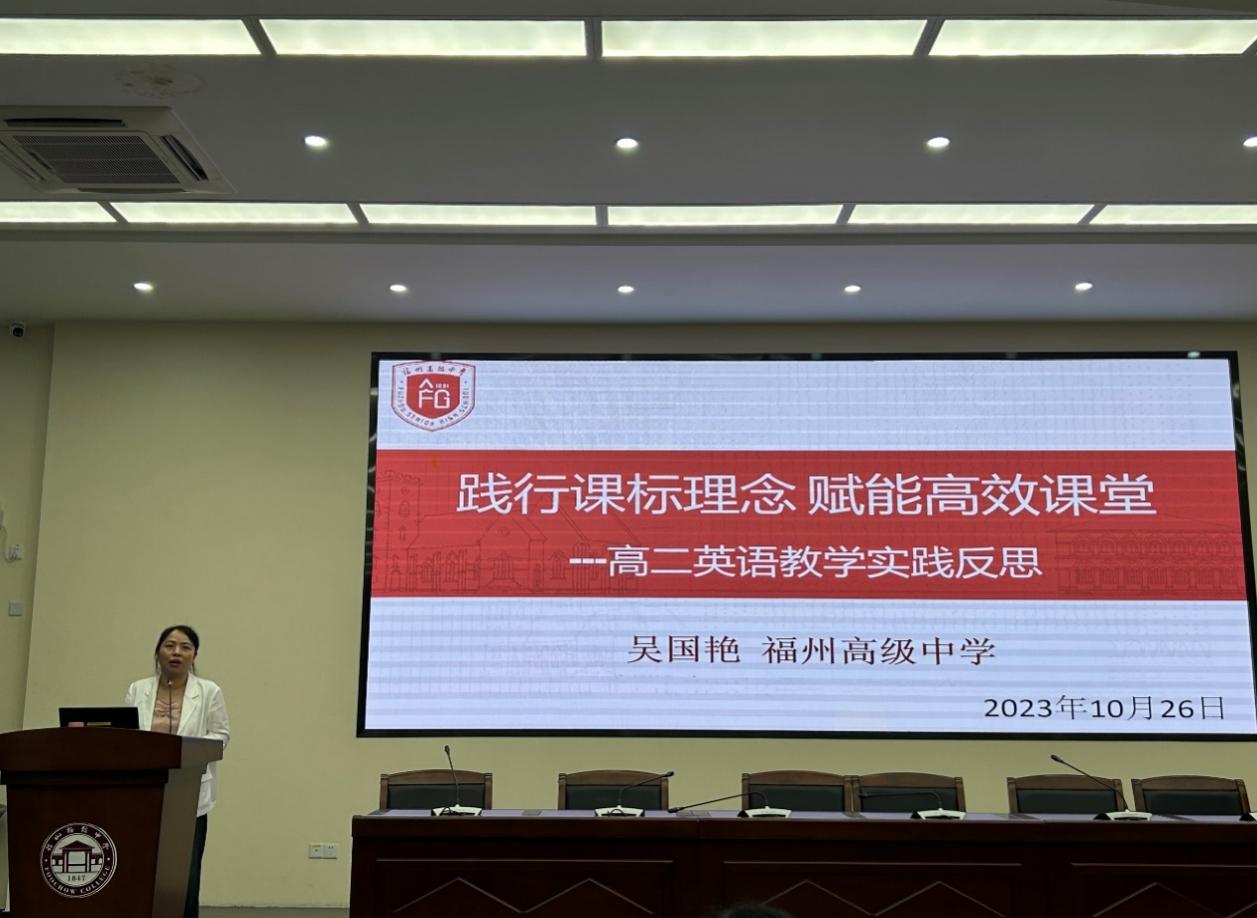 同时,陈蕊老师也给高二学生带来了一节Project课。这节课以学生在本单元城市公园的学习基础上,引入一篇关于世界著名城市公园的语篇学习,从中归纳出城市公园的功能和意义,各城市公园进行的特别活动,以及描述这些活动使用的不同表达法。接下来利用一篇关于福州福道的对话,让学生听取方位关键词,获取游玩路线和可以在福道中进行的特别活动的相关信息,为接下来学生模仿范文,结合不同的城市公园主题和活动,有条理地介绍福州城市公园打下基础。学生课前分组查阅资料,选择城市公园,手绘或下载官方地图,编写对话,课上模仿福道的对话范文就方位、地点和活动内容再进行打磨后交流展示。这堂课通过学习理解,应用实践,迁移创新等一系列体现综合性,关联性和实践性等特点的英语学习活动,使学生基于已有的知识,依托不同类型的语篇,在分析问题和解决问题的过程中,促进自身语言知识学习,语言技能发展,文化内涵理解,能够从人与自然,人与社会的角度了解城市公园的主题意义和人文内涵,通过介绍福州城市公园,对自己家乡的公园有了进一步了解,加深了对家乡的情感和热爱。      来自福高的吴国艳老师对这堂课从三个维度进行点评:深度,宽度和温度。层层递进,渐渐深入,从课本延伸到课外 ,加深对我们家乡城市公园的了解。从阅读,听力和对话不断刺激对本单元学习的巩固,收到了很好的效果。 吴国艳老师还给听课老师们带来一个《践行课标理念,赋能高效课堂》的讲座,在讲座中,她强调了英语课堂教学的12字箴言:学习理解,应用实践,迁移创新,并且结合刚结束的优质课比赛,以及她最近的一堂送教公开课,分享了她的一些教学思考与建议。在讲座中,她建议英语老师们要树立活动观意识,主题意识,主线意识,内化意识,语境意识和评价意识。还介绍了循证阅读的教学方法,读思言教学工具的使用。并且对大观念下单元整体教学和词汇语义网的使用进行详细的介绍,让所有听课老师都受益匪浅。