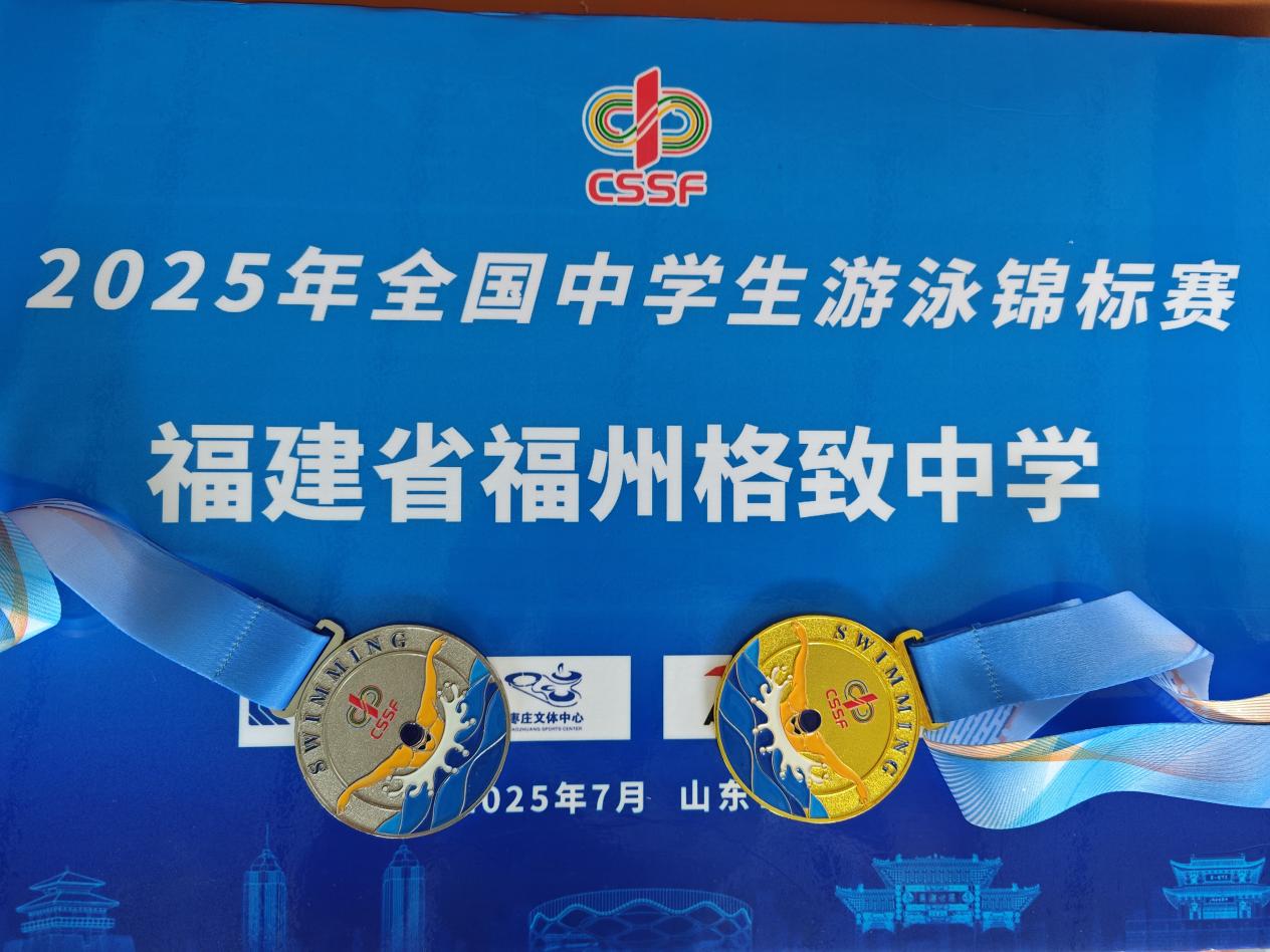 同心勠力,团队协作展雄风 由蔡婧、蔡奕畅、陈芯琰、何鑫柔四朵金花组成的黄金阵容,各展所长,默契衔接,斩获高中女子4×100米自由泳接力第六名和4×100米混合泳接力第七名。 参赛名单 领队:谢梅莲 教练:林莉、虞美龄 运动员:高浩源、张奕扬、何鑫柔、蔡婧、蔡奕畅、吴玥、陈芯琰 获奖名单 第一名 高中女子50米蝶泳 何鑫柔 第二名 高中女子200米蝶泳 蔡奕畅 第四名 高中女子200米蛙泳 蔡奕畅 第六名 高中女子100米蝶泳 蔡婧 高中女子4*100米自由泳接力 蔡婧、蔡奕畅、陈芯琰、何鑫柔 第七名 高中男子50米自由泳 高浩源 高中女子4*100米混合泳接力 陈芯琰、蔡奕畅、何鑫柔、蔡婧 第八名 高中女子100米自由泳 蔡婧 此次全国大赛的征程,是福州格致中学游泳队竞技水平的一次全面检阅。从何鑫柔的巅峰夺冠到女团总分稳居全国前列,每一枚奖牌都凝结着队员们经年的汗水、教练团队的智慧和学校的鼎力支持。泳池中的每一次划臂,都刻下了格致学子"格物致知,明德致远"的精神烙印。期待这支劈波斩浪的队伍,继续扬帆,在未来的碧蓝赛道上再书华章!  |