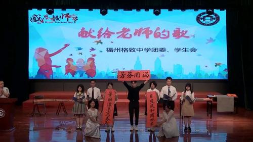 尊师重教——“老师,我喜欢你” (三)青春中国 美丽绽放 爱国是青春的底色,美丽是青春的旋律!在办学理念和校训的引领下,福州格致中学致力于培养“身心健康、品德高尚、胸怀博大、学业精进、特长突出、求索创新”的新时代格致学子,丰富的校园文化,搭建起学生全面健康发展的平台。
